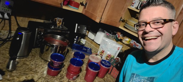 5 filiżanek niskosodowych, bulion wołowy o niskiej zawartości tłuszczu 2 szklanki posiekanych buraków i kapusty 2 szklanki pokrojonych w kostkę ziemniaków 1/2 szklanki czerwonej cebuli pokrojonej w kostkę 2 łyżki octu z czerwonego wina 2 łyżki sosu chili na bazie pomidorów 1 łyżka litego sosu Worcestershire 1 liść laurowy2 ząbki czosnku 1/2 łyżeczki suszonego majeranku 1/4 łyżeczki czarnego pieprzu 1/2 szklanki kwaśnej śmietany o niskiej zawartości tłuszczu, świeżej pietruszki do dekoracji