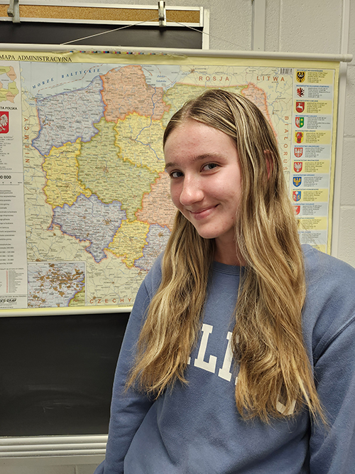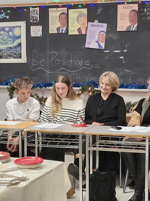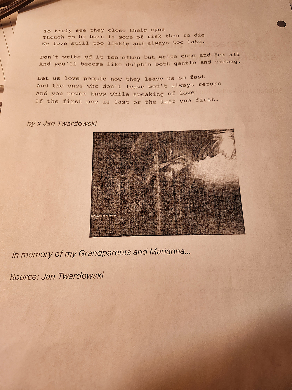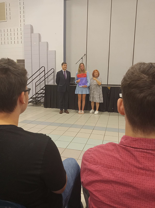 Uczennica—Maya Nowak, żegnając swoich kolegów i koleżanki, a zwłaszcza tych, którzy ukończyli kurs, pięknie przeczytała po polsku i po angielsku swoją przemowę. Dziękowała wszystkim za swoje trzy lata nauki na tym kursie. Zyskali oni pełny kredyt, potrzebny na wyższe studia.