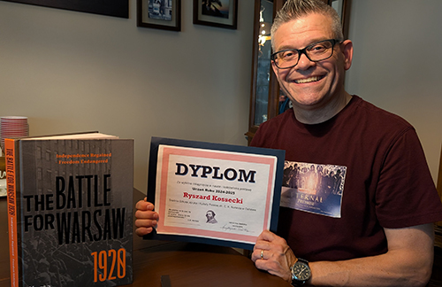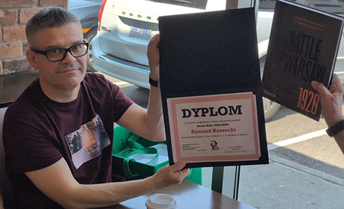 Spotkanie z uczniami z klasy czwartkowej i poniedziałkowej odbyło się na początku czerwca w Scarborough, w COFFEE COULTURE. Część studentów nie mogła przyjechać, ale ci, którym się udało, mam nadzieję, że byli zadowoleni. Pan Ryszard Kossecki był w tym względzie Osobą najważniejszą. Podarowałam panu Ryszardowi DYPLOM UCZNIA ROKU 2024/2025, książkę w postaci albumu o Bitwie Warszawskiej w 1920 roku. Dodatkowo breloczek z symbolem samolotu. Jako że pan Ryszard lata liniami Air Canada.