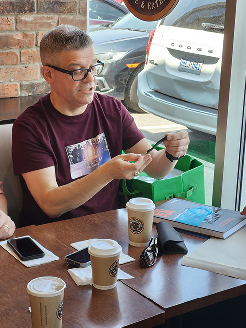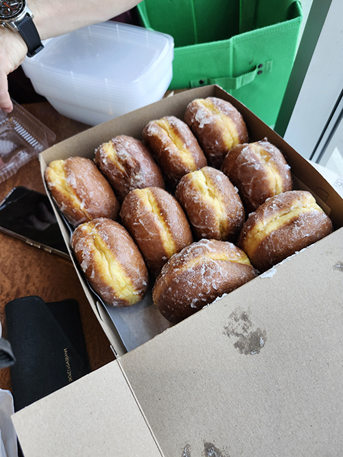 Spotkanie nasze było bardzo oryginalne, zamówiliśmy tylko kawę, ponieważ pan Ryszard kupił wszystkim pączki w polskich delikatesach. Myśleliśmy, że siedząc przy stolikach będziemy upajać się smakiem pączków, gdy tymczasem zabroniono nam je spożywać. Zatem każdy zabrał pączki ze sobą do domu. Oczywiście przy samej kawie, było równie wesoło i miło.
